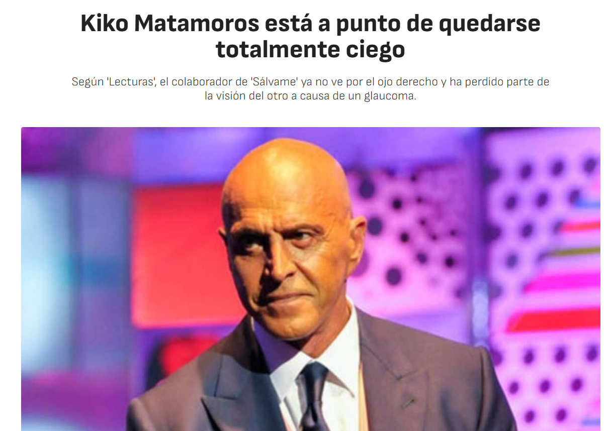 Si la hemeroteca hablara, no pararía de reírse a carcajadas. Imagínense la escena: es 2011, el mundo aún se recuperaba de la enésima crisis económica, se preparaba para la siguiente (y de los peinados de Justin Bieber), y de repente, en un plató de televisión, aparece Kiko Matamoros con una cara que parece salida de una película de zombis low-budget. Ojos entrecerrados como si estuviera negociando con el sol, expresión de «no veo ni la mano que me da el pan», y soltando la bomba: «En unos meses me quedo ciego total». Sí, queridos, el hombre que hoy nos deleita con sus opiniones afiladas como un bisturí de cirujano plástico confesó que el glaucoma le tenía acorralado.